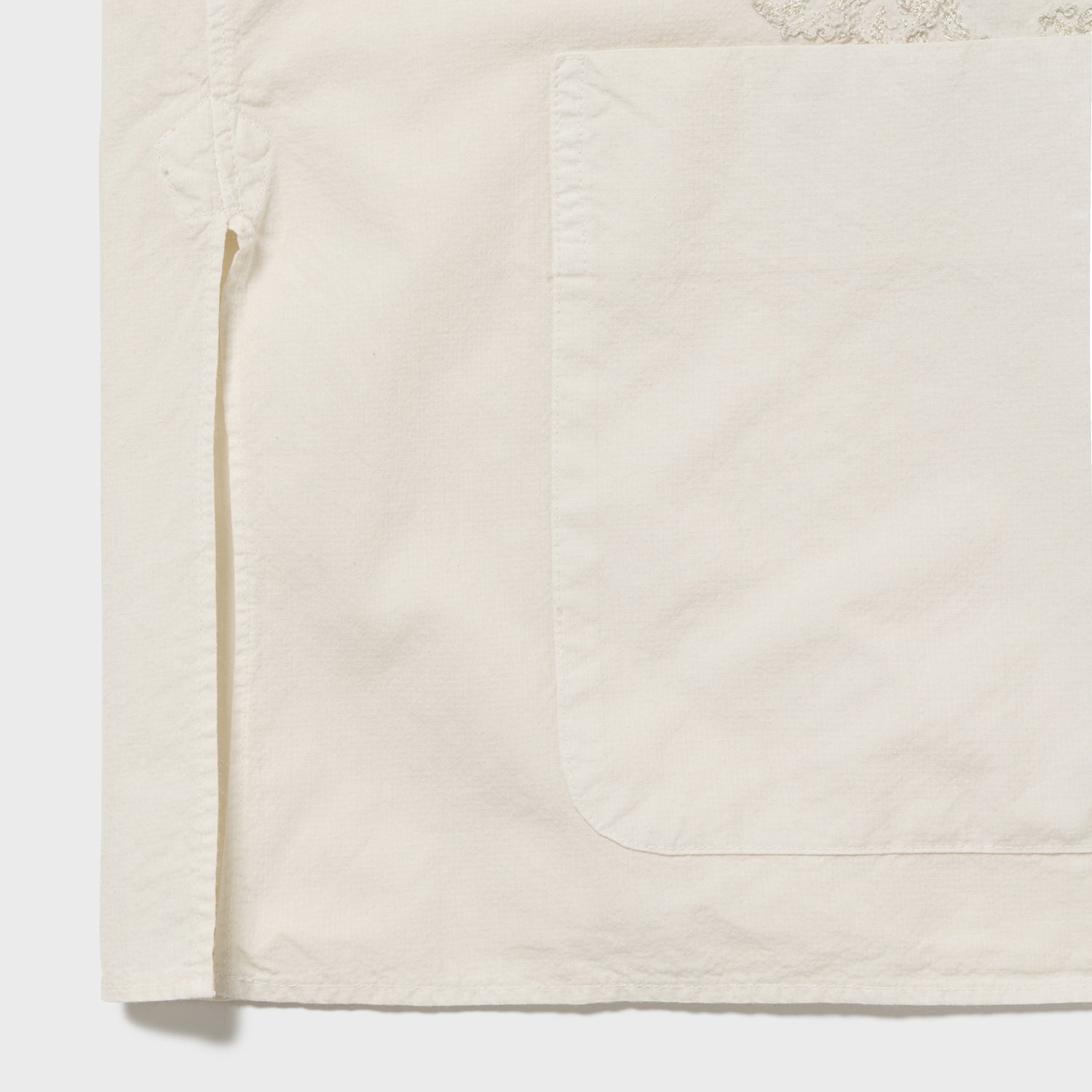 ケミカルな加工を一切行わず、強い洗いのみで仕上げることで、縮率差・テンション差により細かく規則的な凹凸を生じさせています。