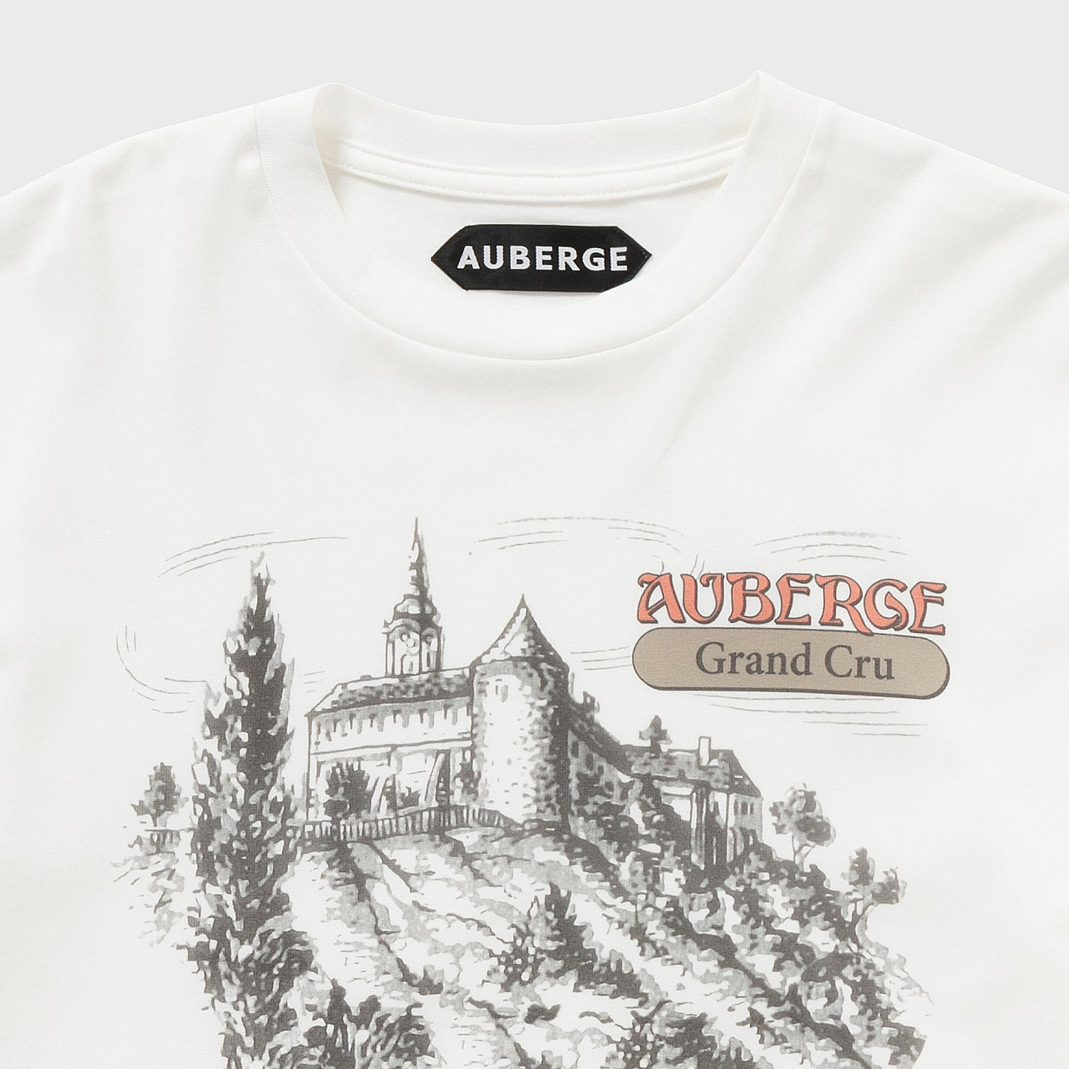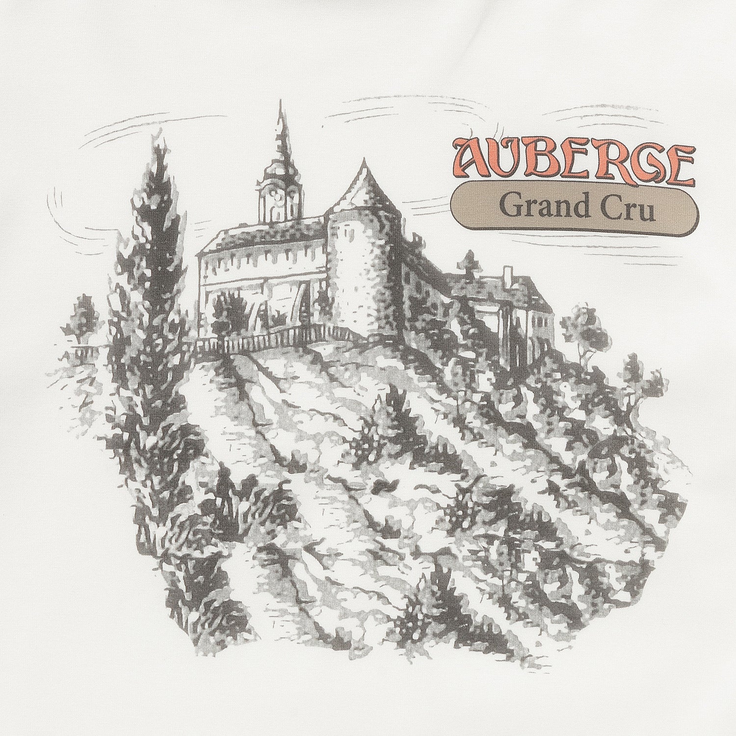 胸元にフランスの田舎の葡萄棚をイメージしたイラストを描きました。GRANDO CRUクリュとは最高の畑の意味です。