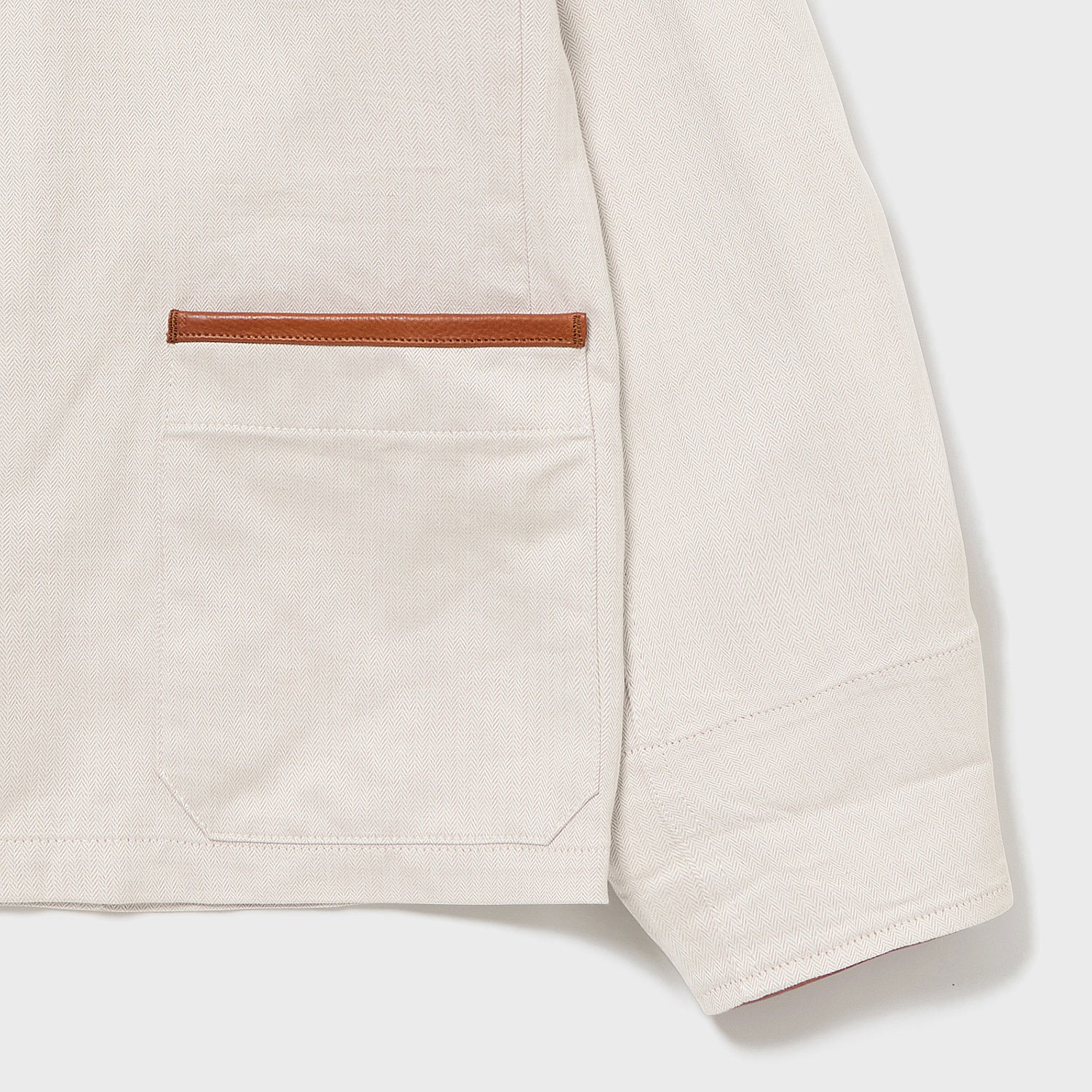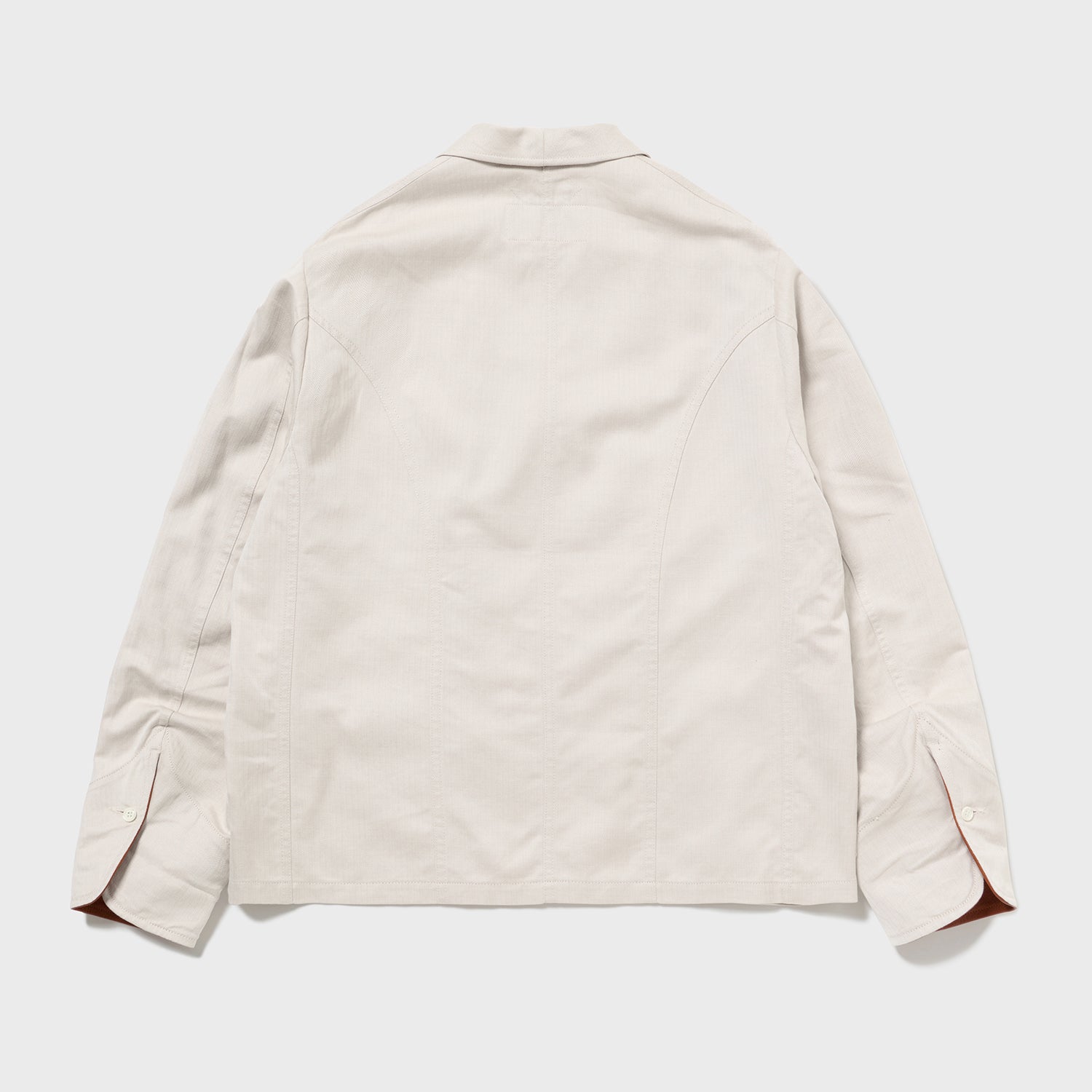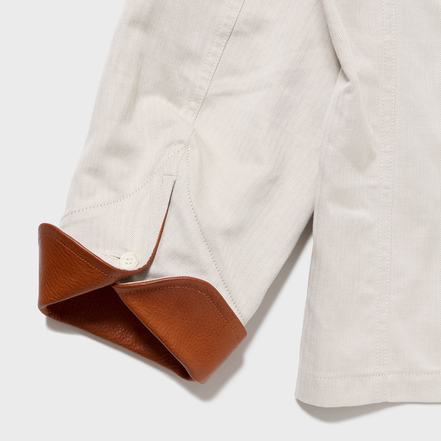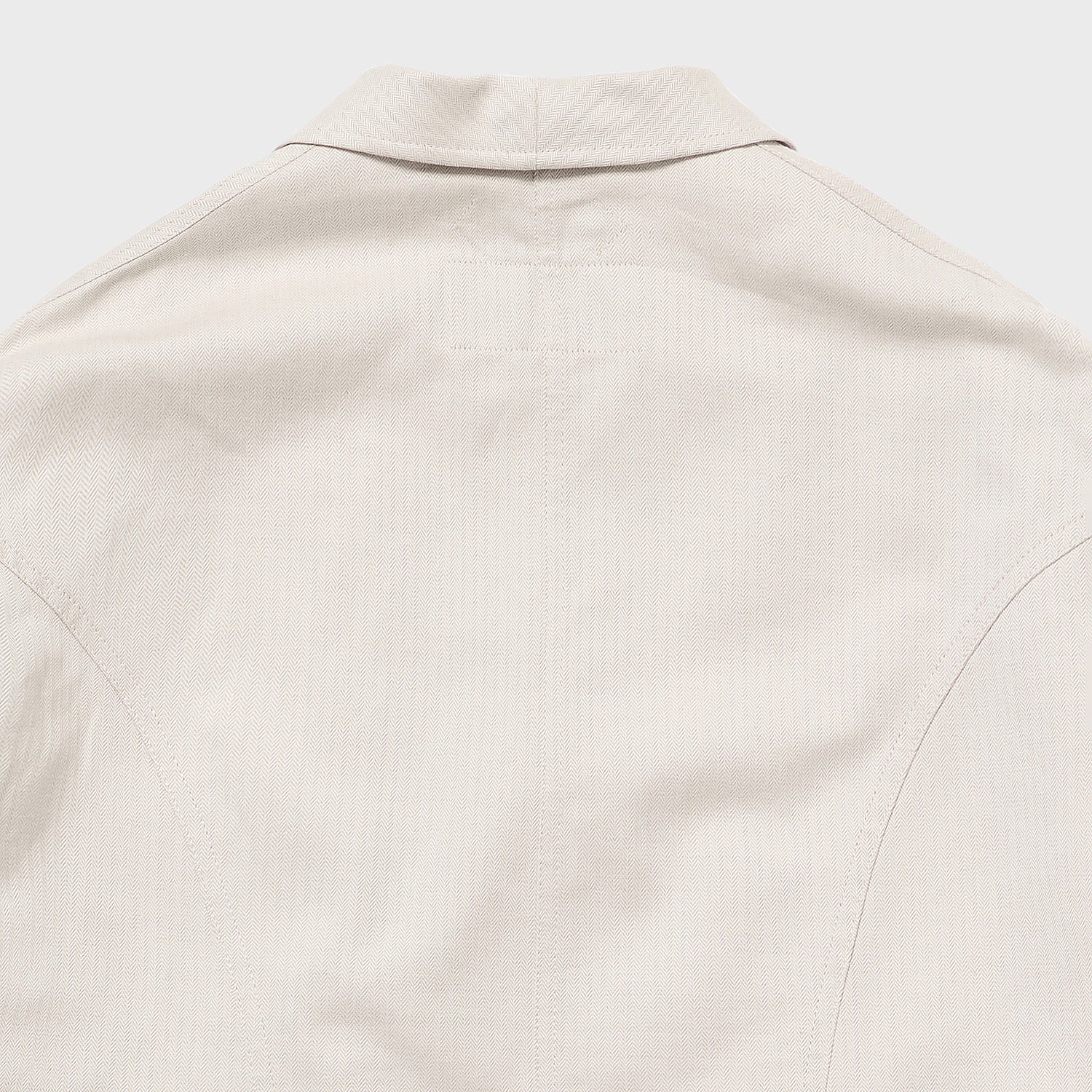 経糸は、ただでさえ毛羽が少なく光沢のある海島綿に、さらにガス焼きを施すことで至高の質感を引き出して使用。緯糸にはシルクリネンの光沢と素材感を加え、天然素材による極限の風合いを目指しました。