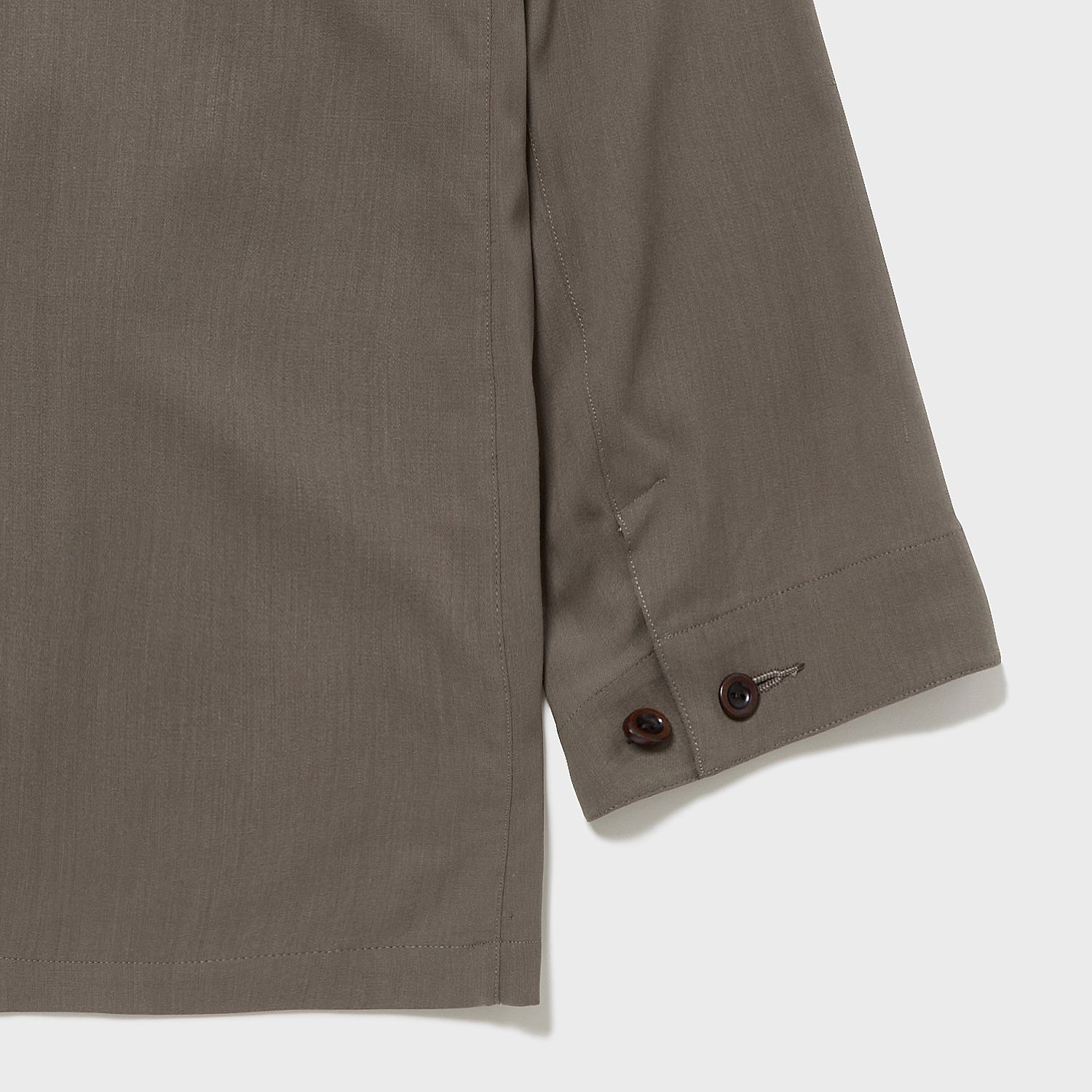 スーパー140’Sをウォッシャブル加工し、そこから強撚糸を作り、2×1綾組織でギャバジンに仕立てました。